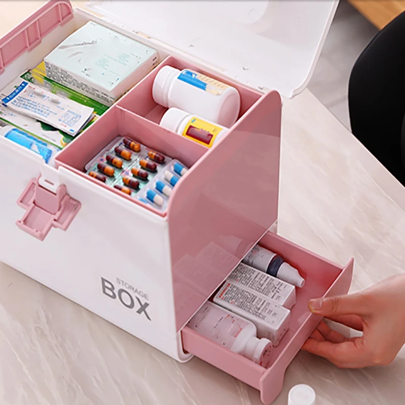 IALJ Top Medicine Box First Aid Kit Storage Box Plastic Container Emergency Kit Portable Multi-Laye